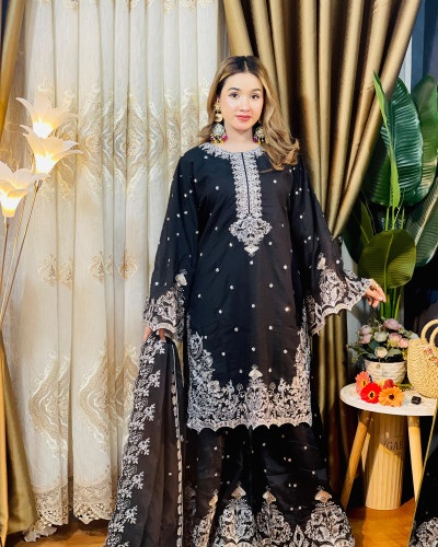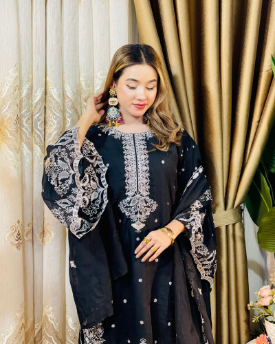 Exclusive Meherun Royal Garara Set Black – Premium Chiffon 3 Piece Ready to Wear Eid Collection
