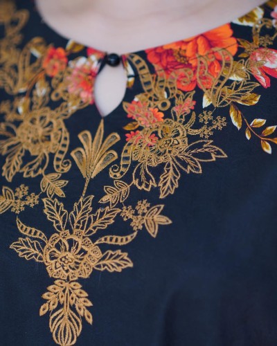 ডিজাইন: ডিজিটাল ফুলেল প্রিন্ট + এমব্রয়ডারি