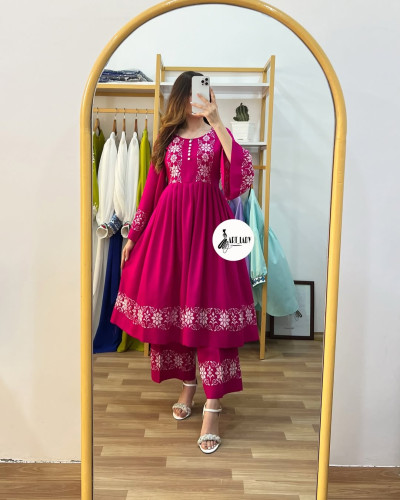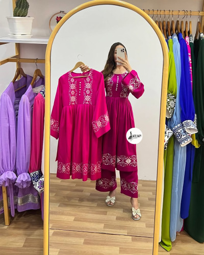 Premium Linen Kurta Set for Women – Rani Pink | Size 32–46 | Long 45”