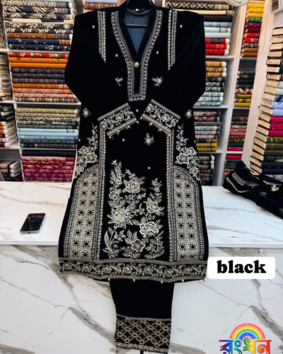 শীতের প্রিমিয়াম ভেলভেট টু-পিস — কালো