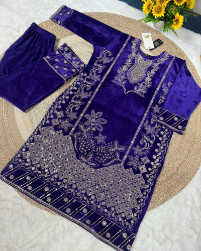 শীতের প্রিমিয়াম ভেলভেট টু-পিস — Purple1650